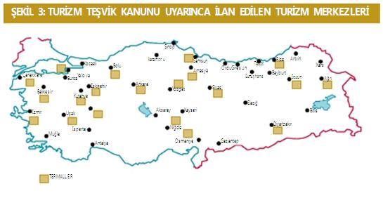 olarak yeni alanlar tespit edilmiştir.(Şekil 3: Termal Turizm Kentleri Bölgeleri Haritası) Bu çalışma